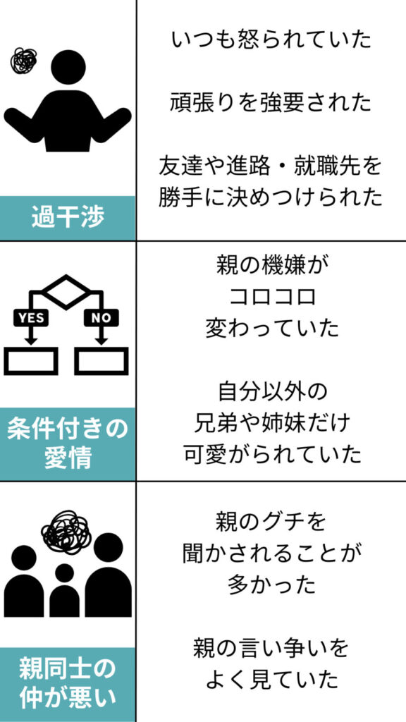 親の言うことが正しいと思いこむようになり、本来の自分がわからなくなります。